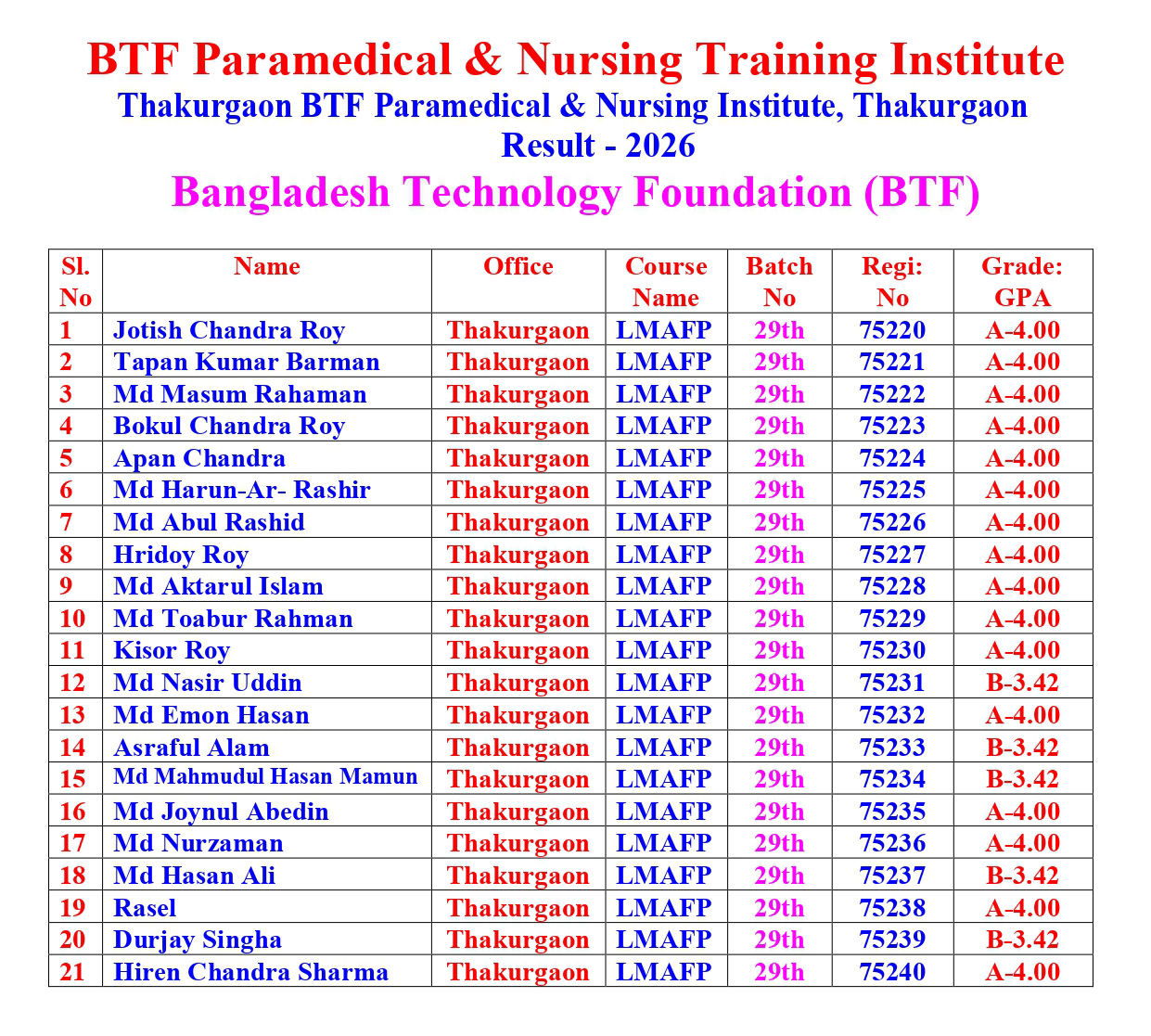 ঠাকুরগাঁও অফিস: LMAFP কোর্সের ২৯ তম ব্যাচের ফলাফল- ২০২৬